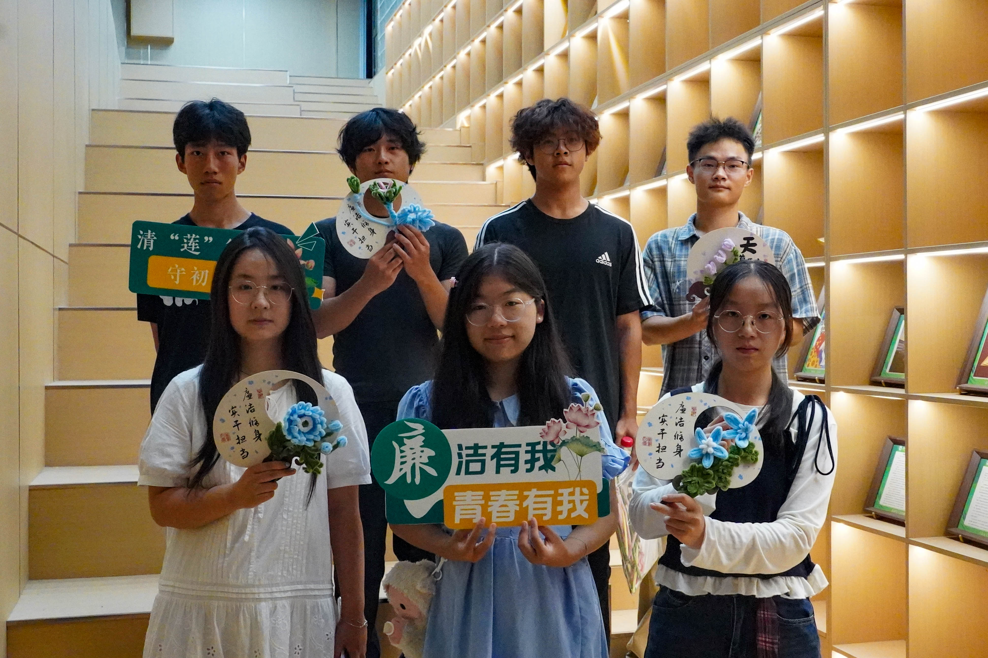 活动现场,同学们以“廉”为魂,巧妙地将莲花、翠竹、“廉”字等寓意清廉融入作品之中。一把剪刀让红纸“廉”纹绽放;团扇上笔墨流转,清风意象与廉洁寄语跃然扇面。创作过程中,大家相互交流对廉洁文化的理解,在动手实践中感悟内涵。