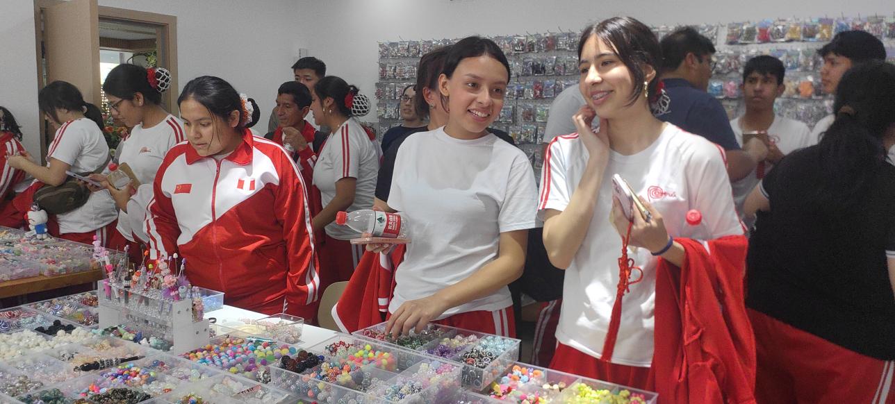 来访团与我校师生就专业设置、课程内容、创业教育模式进行了深入交流,我校学生亲手编织中国结,作为友谊的象征,赠予对方,获得秘方师生的一致好评。交流会后,圣多明戈中学师生一行参观了宾王长廊数字贸易实训基地。