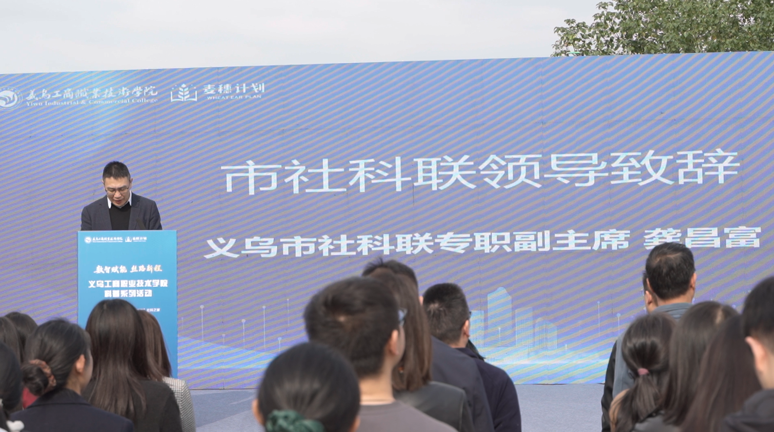 为与城市发展新动脉同频共振,共同谱写数字丝路新篇章,11月3日,义乌工商职业技术学院“启航·丝路新程”科普系列活动启动仪式在学校社科广场隆重举行。义乌市社科联专职副主席龚昌富、义乌工商职业技术学院副院长盛湘君出席活动,学校师生代表及来自义乌市城镇职校、宗泽小学的师生代表共同参加。