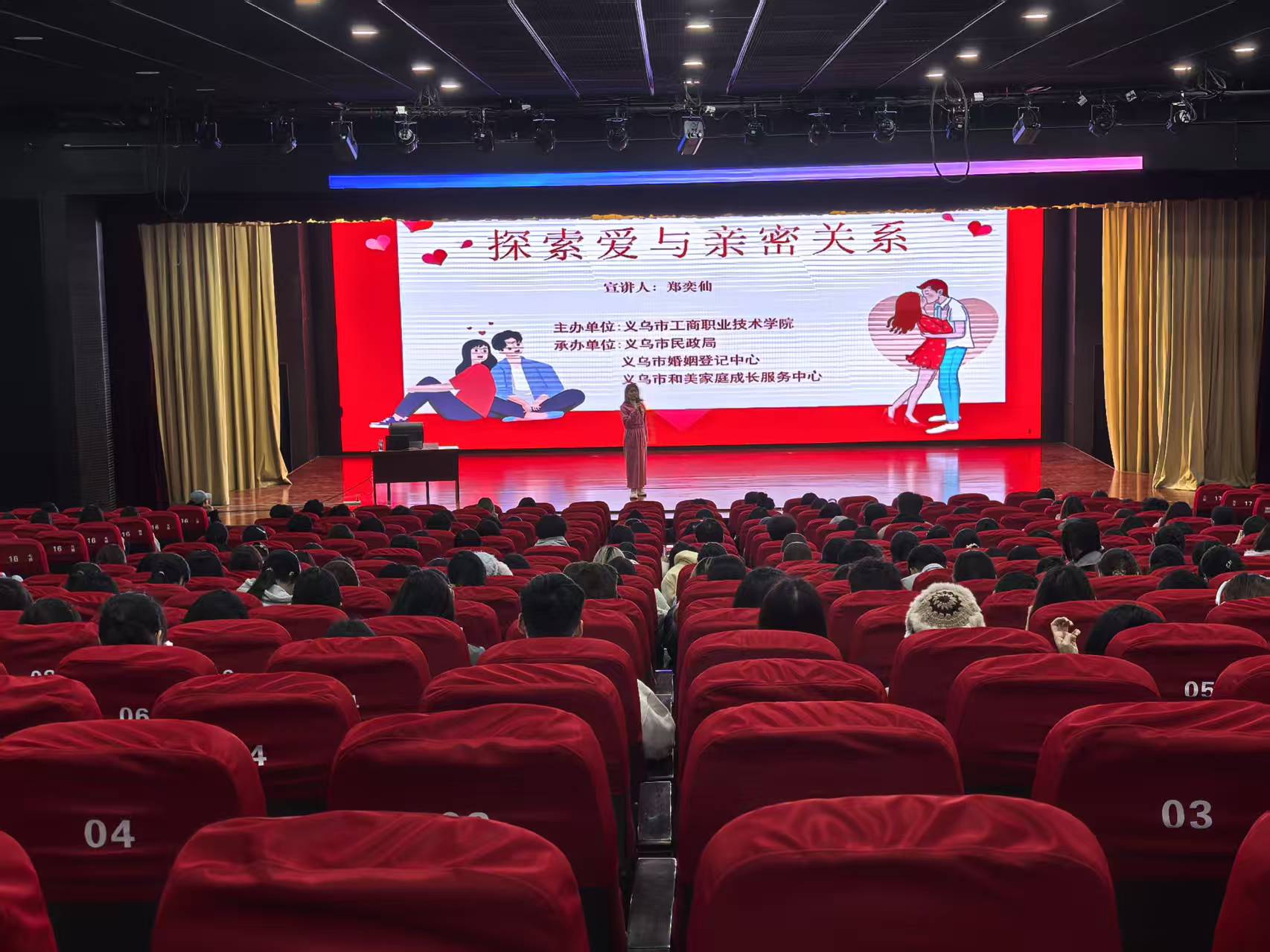 为引导毕业生树立理性、健康的婚恋观,近日,游艇会线路检测中心面向400余名大三学生量身打造“探索爱与亲密关系”的主题教育讲座。活动特邀义乌市婚姻家庭协会辅导专委会副主任、高级家庭教育指导师郑奕仙担任主讲。